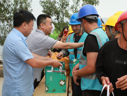 馬江利一行親切慰問(wèn)工作在一線的職工們,為他們送上了白糖、水杯、茶葉、毛巾等防暑降溫用品,并叮囑他們一定要注意防暑降溫,勞逸結(jié)合,合理安排項(xiàng)目現(xiàn)場(chǎng)施工,做好夏季安全防護(hù)工作。