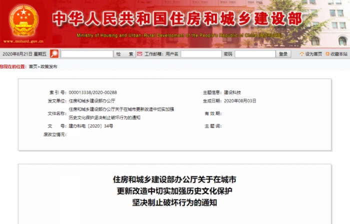 日前,住建部辦公廳下發(fā)《關(guān)于在城市更新改造中切實加強歷史文化保護堅決制止破壞行為的通知》,要求,在城市更新改造中切實加強歷史文化保護,堅決制止破壞城市片區(qū)和建筑的行為。
