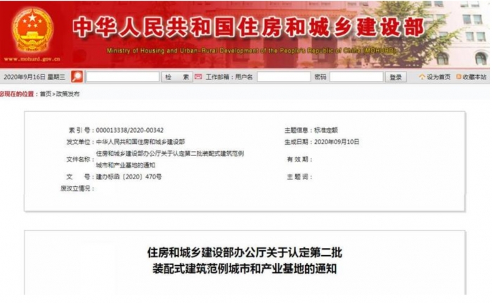 9月15日,住建部認(rèn)定西安市等18個城市為第二批裝配式建筑范例城市,天津市現(xiàn)代建筑產(chǎn)業(yè)園區(qū)等12個園區(qū)、北京建工集團(tuán)有限責(zé)任公司等121家企業(yè)為第二批裝配式建筑產(chǎn)業(yè)基地。