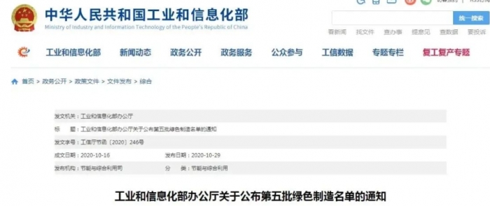 為貫徹落實(shí)《工業(yè)綠色發(fā)展規(guī)劃(2016-2020年)》和《綠色制造工程實(shí)施指南(2016-2020年)》,加快綠色制造體系建設(shè),引領(lǐng)工業(yè)高質(zhì)量發(fā)展,我部組織開(kāi)展了第五批綠色制造名單推薦工作。經(jīng)申報(bào)單位自評(píng)價(jià)、第三方機(jī)構(gòu)評(píng)價(jià)、省級(jí)工業(yè)和信息化主管部門評(píng)估確認(rèn)及專家論證、公示等程序,確定了第五批綠色制造名單,現(xiàn)予以公布。其中,綠色工廠719家、綠色設(shè)計(jì)產(chǎn)品1073種、綠色工業(yè)園區(qū)53家、綠色供應(yīng)鏈管理企業(yè)99家。有關(guān)事項(xiàng)通知如下: