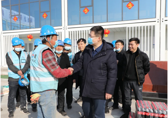 在新春佳節(jié)來臨之際,2月8日至9日,延安市委常委、常務(wù)副市長劉曉軍、住建局局長徐步亮、副局長郭毅等先后到我公司項目慰問堅守在施工一線的廣大員工。