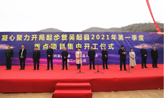 開工儀式上,吳起縣委書記嚴(yán)曉慧作了動(dòng)員講話并宣布吳起縣2021年第一季度重點(diǎn)項(xiàng)目正式開工。嚴(yán)書記在致辭中指出,吳起縣將始終秉承“項(xiàng)目為王,招商第一”的理念,全力營造有利于項(xiàng)目建設(shè)的優(yōu)質(zhì)環(huán)境,以高質(zhì)量項(xiàng)目推動(dòng)高質(zhì)量發(fā)展,希望各項(xiàng)目建設(shè)單位倒排工期,掛圖作戰(zhàn),高標(biāo)準(zhǔn)建設(shè),高效率推進(jìn),把每個(gè)項(xiàng)目都建成精品工程。