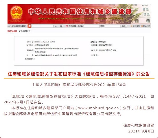 國(guó)家標(biāo)準(zhǔn)《建筑信息模型存儲(chǔ)標(biāo)準(zhǔn)》發(fā)布