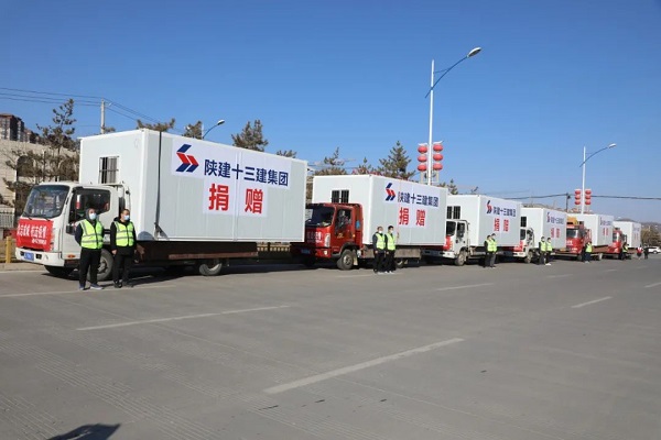為支援一線防疫工作,陜建十三建集團向延安新投物業(yè)服務(wù)有限公司捐贈了8000只口罩、100件軍大衣,60箱方便面、60箱火腿腸、60箱奶茶和15箱榨菜。