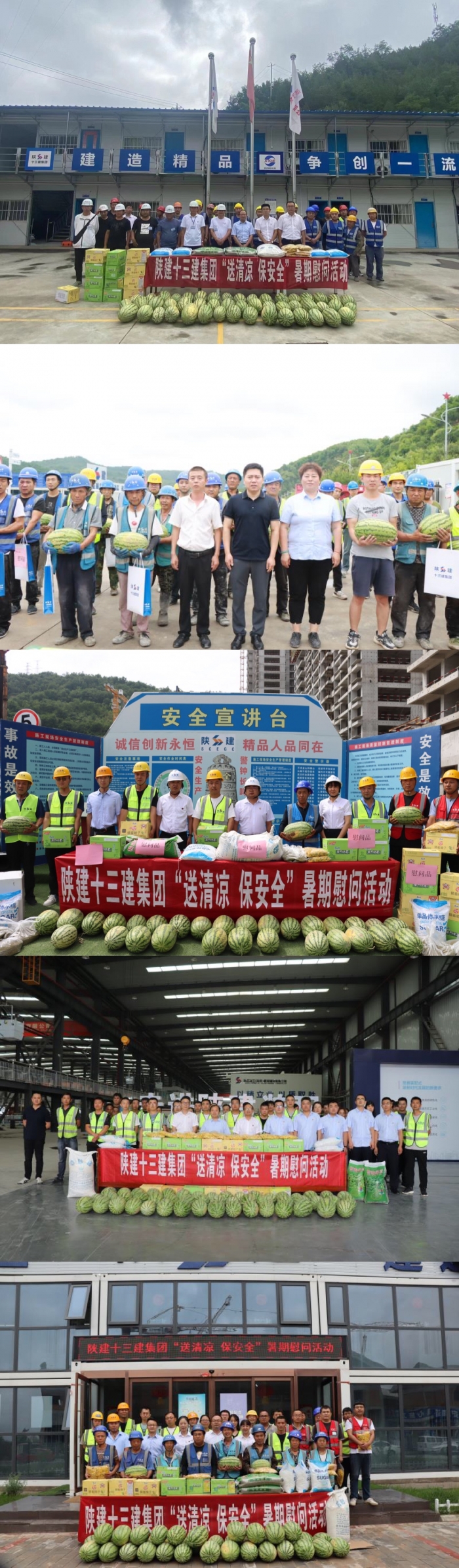 集團總工程師王弘起,副總經(jīng)理楊永宏,副總經(jīng)理張鑫偉,總會計師劉小衛(wèi),紀委書記、工會主席李靜分別前往延安市社會福利院遷建項目(一期)、延安南泥灣工匠學院項目、伴山樾谷·芳菲里項目、延安新型建材公司、信天游文創(chuàng)餐飲街區(qū)等項目開展慰問活動,代表集團公司對高溫天氣堅守在一線的廣大員工及工友表示親切的問候和衷心的感謝,并為大家送上西瓜、白糖、綠豆、菊花、冰糖、飲料、花露水等防暑降溫物品。同時,叮囑項目部要始終把安全放在首位,科學安排施工作業(yè)時間,做好后勤保障工作,制定防暑防汛工作預案,在確保一線施工作業(yè)人員健康安全的前提下抓質(zhì)量提進度,緊盯項目節(jié)點目標,圓滿完成各項建設(shè)任務(wù)。