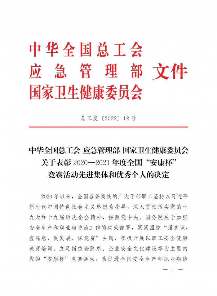 11月2日,全國“安康杯”競賽組委會(huì)在北京召開2020-2021年度全國“安康杯”競賽活動(dòng)表彰暨經(jīng)驗(yàn)交流會(huì)。表彰2020—2021年度全國“安康杯”競賽先進(jìn)集體和優(yōu)秀個(gè)人,集團(tuán)延安南泥灣勞模工匠學(xué)院項(xiàng)目榮獲“優(yōu)勝班組”榮譽(yù)稱號(hào)。