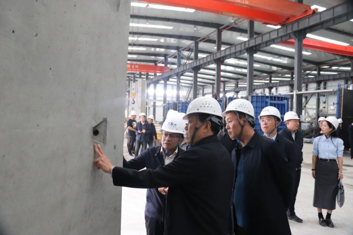 集團總工程師、新型建材黨支部書記、董事長王弘起帶領與會人員觀看了《預制構件三維動畫》工藝宣傳片,參觀了裝配式PC構件生產流水線、機電預制安裝生產車間,詳細介紹了風電塔筒混凝土管片生產流程。參觀人員詢問裝配式構件的生產工藝和質量控制情況,對裝配式建筑有了進一步的了解,對集團積極推進裝配式發(fā)展方面取得的成績給予了充分肯定。