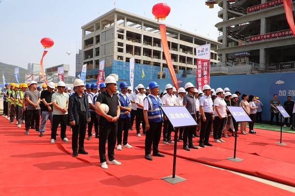 建設單位、監(jiān)理單位相關人員,集團相關部門及項目全體人員參加了封頂儀式。