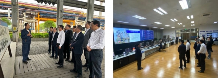 會前,韓軍鋒一行參觀了巨化集團(tuán)電石工業(yè)遺存、氟制冷劑事業(yè)部智能控制室,了解了巨化集團(tuán)產(chǎn)業(yè)發(fā)展、科技創(chuàng)新、數(shù)智變革等情況。