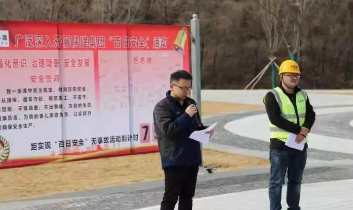 儀式上,陜建集團(tuán)南泥灣紅色文化小鎮(zhèn)建設(shè)項(xiàng)目常務(wù)副經(jīng)理屈曉東安排部署2019年重點(diǎn)安全注意事項(xiàng),并貫穿落實(shí)集團(tuán)公司“百日安全”活動(dòng)的宗旨。會(huì)上各參建單位公司經(jīng)理、項(xiàng)目經(jīng)理積極講述“百日安全”活動(dòng)的重要性。開(kāi)發(fā)公司工程管理部長(zhǎng)白彥明并發(fā)表講話。